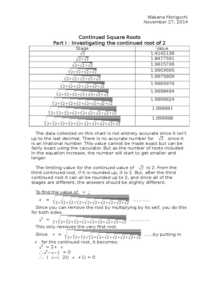 Continued Square Roots Pdf Square Root Mathematical Concepts